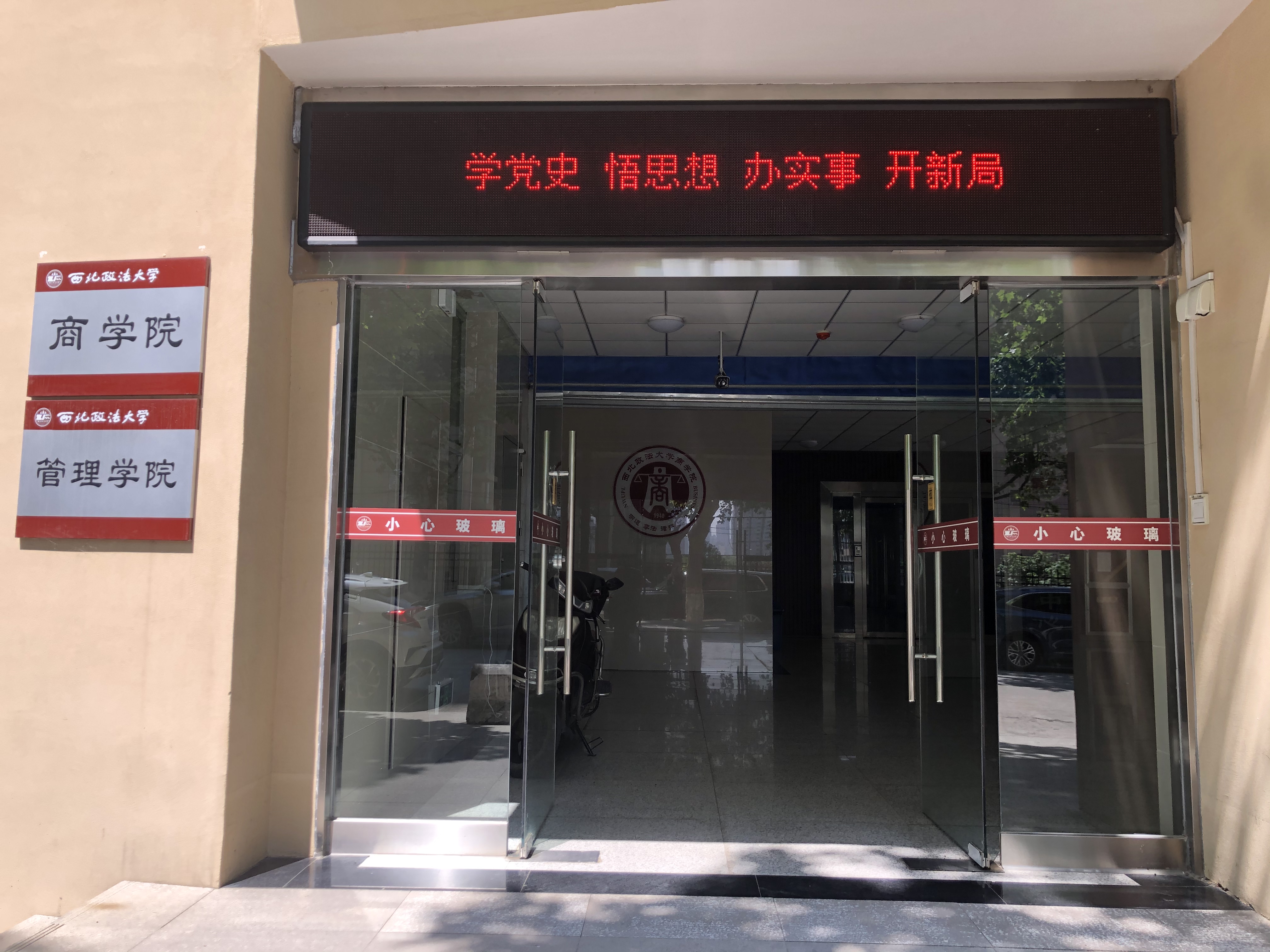 近日,继在“商院一家亲”微信公众号开设党史学习教育专栏,每天推送党史人物、党史故事,普及党史知识之后,院党委利用学院教学楼里的LED电子显示屏,播放宣传标语。在学院行政办公区域墙面装置以《中国共产党光辉历程》等为主题的宣传展板,推动党史学习教育入脑入心,使全体党员干部在日常学习中潜移默化接受熏陶。
