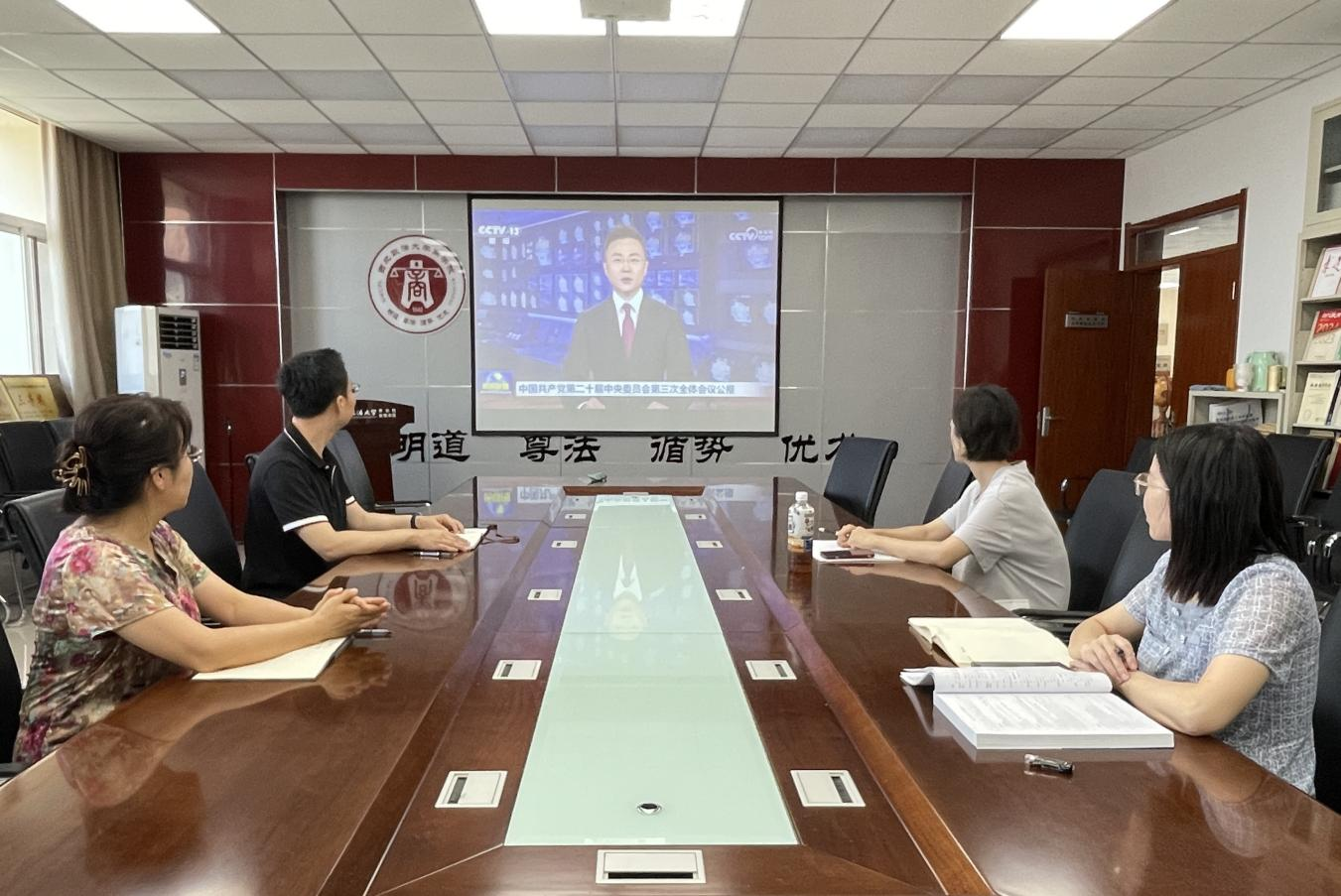 会议强调,要把学习宣传贯彻党的二十届三中全会精神作为当前和今后一个时期的重大政治任务,在全院上下迅速掀起学习宣传贯彻的热潮。要认真研读党的二十届三中全会公报和《中共中央关于进一步全面深化改革、推进中国式现代化的决定》,深刻领悟进一步全面深化改革的重要性和必要性,准确把握《决定》的丰富内涵、实践要求,切实增强学习宣传贯彻的政治自觉思想自觉行动自觉。要围绕全会提出的重点改革任务,结合学院学科特色和研究方向,积极组织力量开展相关理论研究和实践阐释。要聚焦《决定》关于教育、科技、人才的战略部署和党的建设的新要求,增强学院党组织的政治功能和组织功能,主动适应变化,科学谋划改革,不断完善立德树人机制,提升人才培养质量,用实际行动为强国建设、民族复兴培养更多高素质人才。