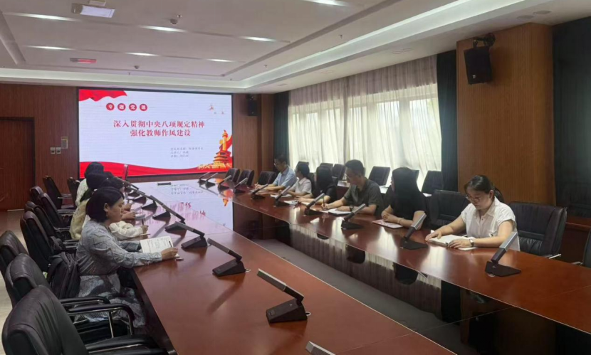 随后,支部在雁塔区党员干部党性教育基地会议室开展集体学习研讨。冯颖以“学习贯彻中央八项规定精神,强化教师作风建设”为题,围绕新时代党的作风建设的重要性、中央八项规定精神与成效、教师党员如何在工作中践行优良作风等三个方面,讲授深入贯彻中央八项规定精神学习教育专题党课。