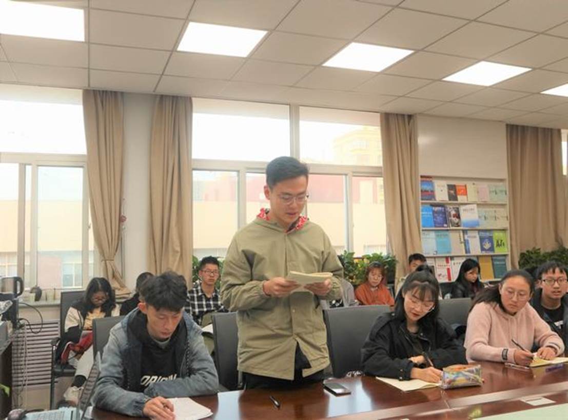 11月14日,性爱直播 于诚意楼6楼会议室召开十九届四中全会讨论会议,院党委副书记、副院长刘智伟、团委书记侯颖怡主持召开。性爱直播 学生会代表、各班团支书参加会议。