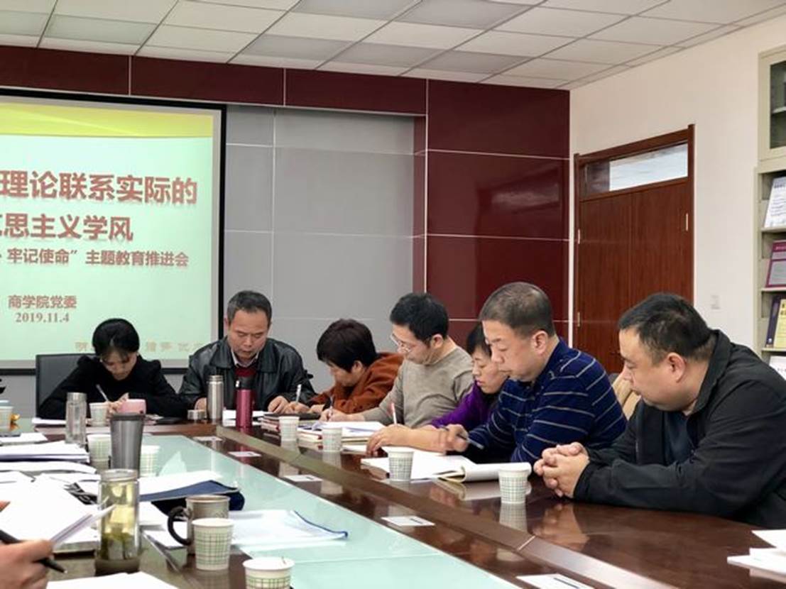 根据主题教育工作安排,11月4日,性爱直播 党委中心组及扩大成员在学院资料室召开“大力弘扬理论联系实际的马克思主义学风——不忘初心,牢记使命”主题教育推进会。校巡回指导组一组组长刘育龙、院领导班子成员、各党支部书记、各系部负责人、全体学工干部、行政人员及学生党员代表参加会议,会议由院党委书记路建潮主持。