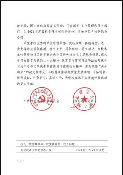 荣获2022年度目标责任考核“优秀单位”荣誉称号。