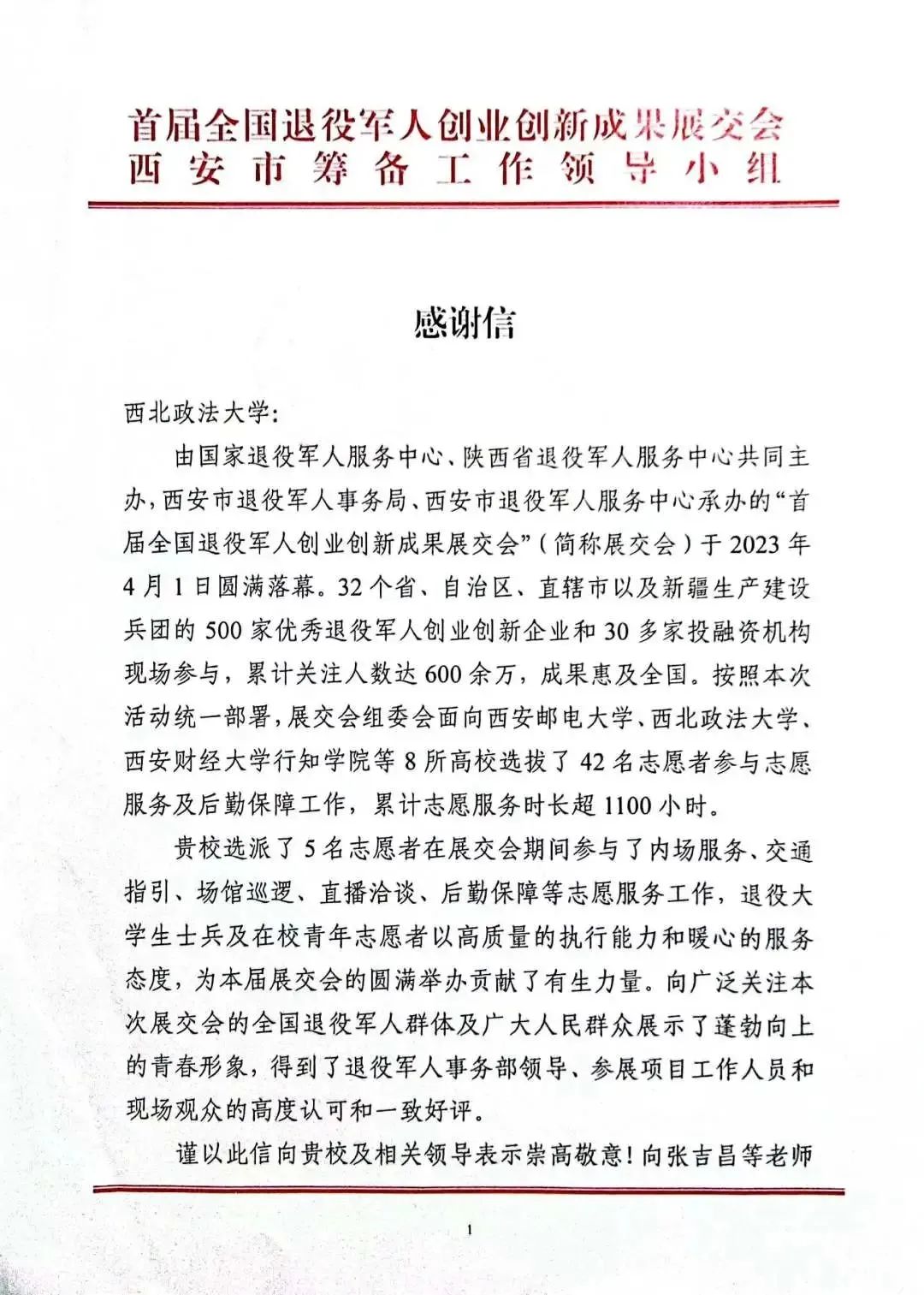 西安市退役军人服务中心对性爱直播 对本次展交会工作的支持表示崇高的敬意,送来感谢信,并向志愿者颁发志愿服务证书。