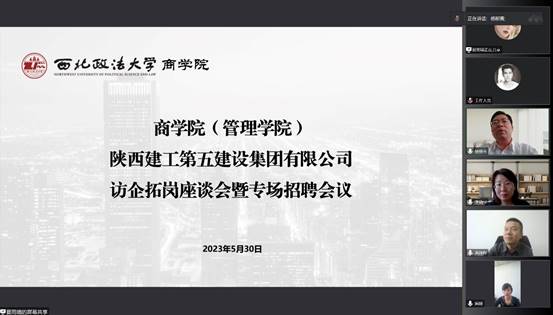 为深入拓展就业岗位资源,精准发掘校企合作契合点,5月30日下午性爱直播 与陕西建工第五建设集团有限公司线上召开访企拓岗座谈会暨专场招聘会。陕建五建集团人力资源部(党委组织部)部长黄锋辉、人力资源部副部长郑惠、人力资源部招聘主管吴斌,性爱直播 领导、部分毕业生参加会议,会议由蔺媛副书记主持。