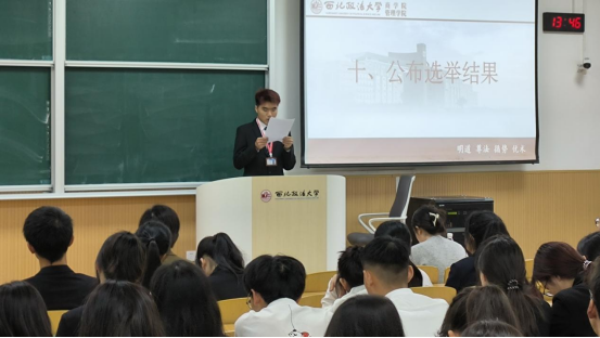 ▲学生会工作人员王光酉宣读选举结果