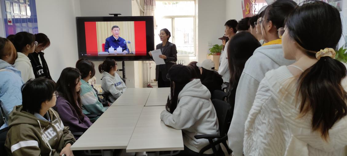 杨洁老师围绕习近平总书记在全国教育大会上的重要讲话精神进行阐述,并鼓励全体学生紧跟时代步伐、勇担时代大任、争做有为青年,将自己的成长成才融入中国式现代化建设的大潮中。会上,杨洁老师还结合学院人才培养工作,就教学设计、教学理念及如何在学习中提高学习效率等向同学们做了介绍。