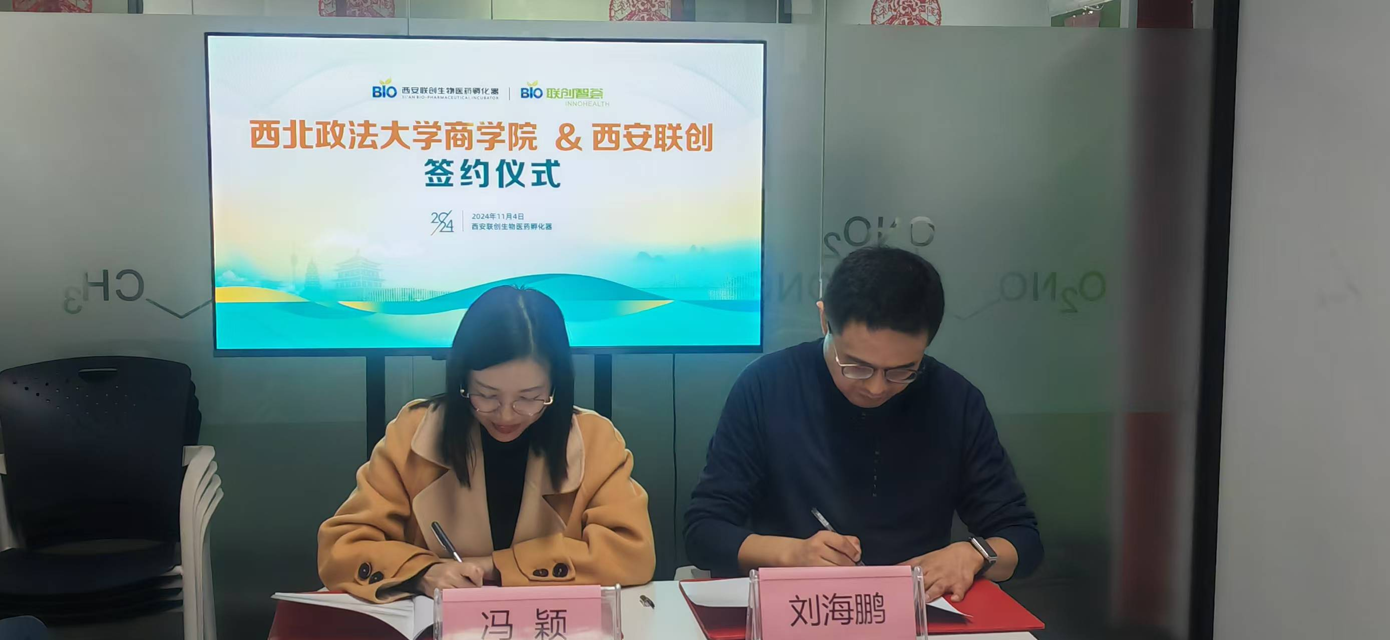 与国家级生物医药专业孵化器——西安联创生物医药孵化器签订校外实习实践基地合作协议,并举行实习实践基地授牌仪式。西安联创生物医药孵化器总经理刘海鹏、项目经理王子格、项目总监赵英,性爱直播