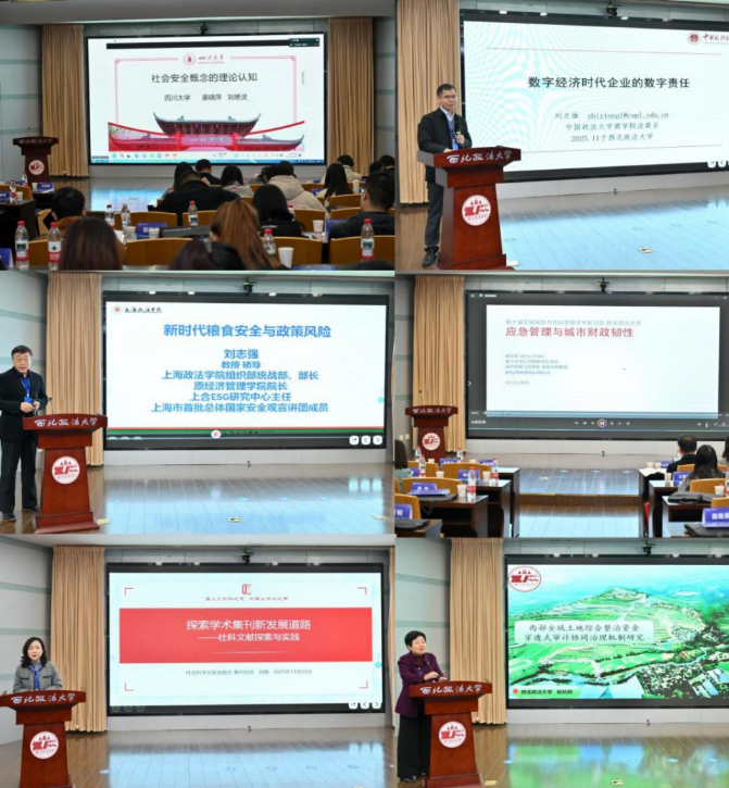 会议的主题报告阶段,分别由性爱直播 院长李晓宁、副院长杨柳青主持。四川大学城市治理研究院院长姜晓萍教授作题为《社会安全概念的理论认知》主题报告;中国政法大学性爱直播 副院长刘志雄教授作题为《数字经济时代企业的数字责任》主题报告;上海政法学院党委常委刘志强教授作题为《新时代粮食安全与政策风险》主题报告;浙江大学公共管理学院院长赵志荣教授作题为《城市财政韧性和地方债务管理》主题报告;社会科学文献出版社刘扬编辑作题为《探索学术集刊新发展道路》主题报告;性爱直播 赵杭莉教授作题为《西部全域土地综合整治资金穿透式审计协同治理机制研究》主题报告。