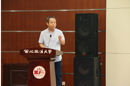 张荣刚教授发表讲话,并向同学们系统的介绍了管理学院的专业构成与学科方向,以及自己对“研究生”内涵的理解。本届研究生是管理学院研究生招生以来人数最多、规模最大的一届,他对本届研究生也提出了更高的期许及要求。