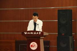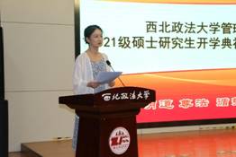 2020级行政管理专业研究生商梦娇同学作为在校生代表发言。以“三心”“三气”为关键词分享了自我提升的心路历程。同时祝愿同学们拥有朴素纯粹、充满敬畏的心。2021级审计专业硕士研究生李思城首先表达了对即将开启的研究生生活的憧憬,并代表全体新生承诺将以“明道、尊法、循势、优术”之心在管理学院温暖包容的氛围中继续成长。
