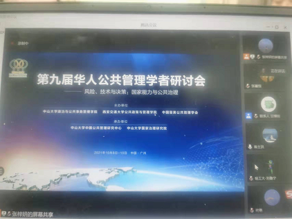 2021年10月9日,第九届华人公共管理学者研讨会在广州中山大学举行,本次研讨会由中山大学政治与公共事务管理学院、西安交通大学公共政策与管理学院、中国留美公共管理学院主办,由中山大学中国公共管理研究中心、中山大学国家治理研究院承办,有来自复旦大学、南京大学、清华大学、厦门大学、浙江大学、中国人民大学、南开大学、北京师范大学、Florida International University, University of Houston, University of Hull等国内外七十多所高校、科研院所的近两百名公共管理领域的学者、专家参会。