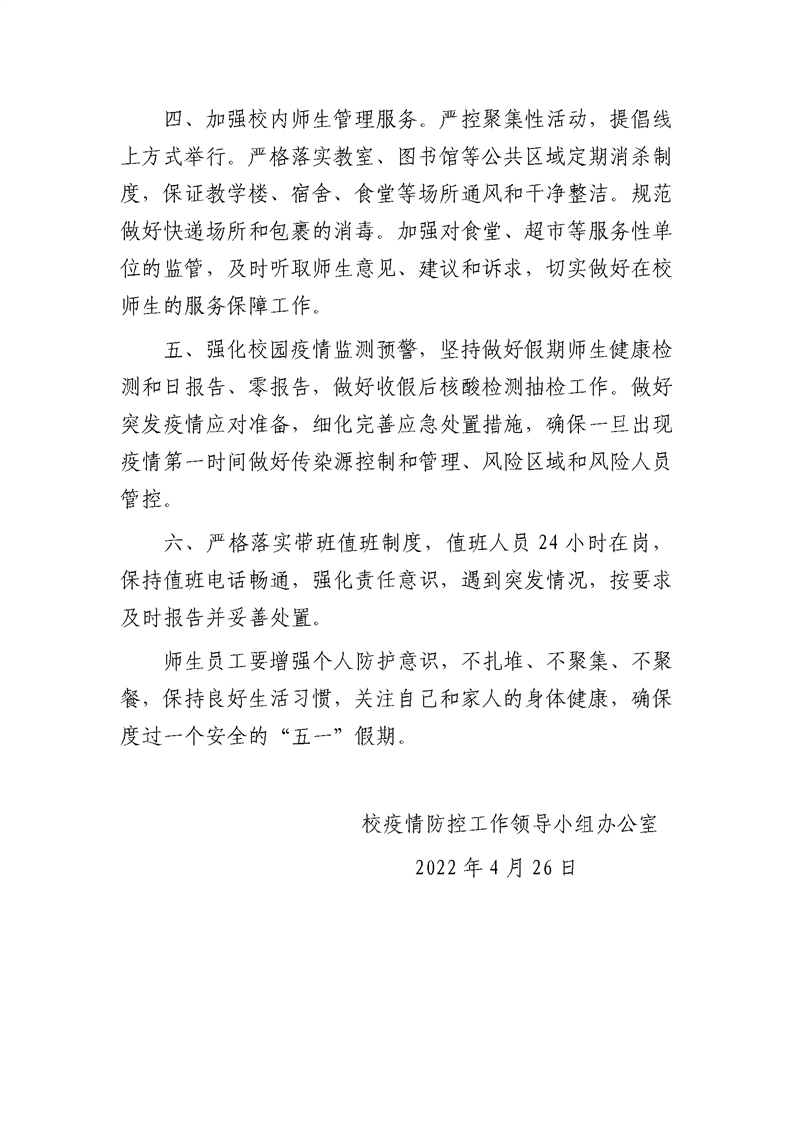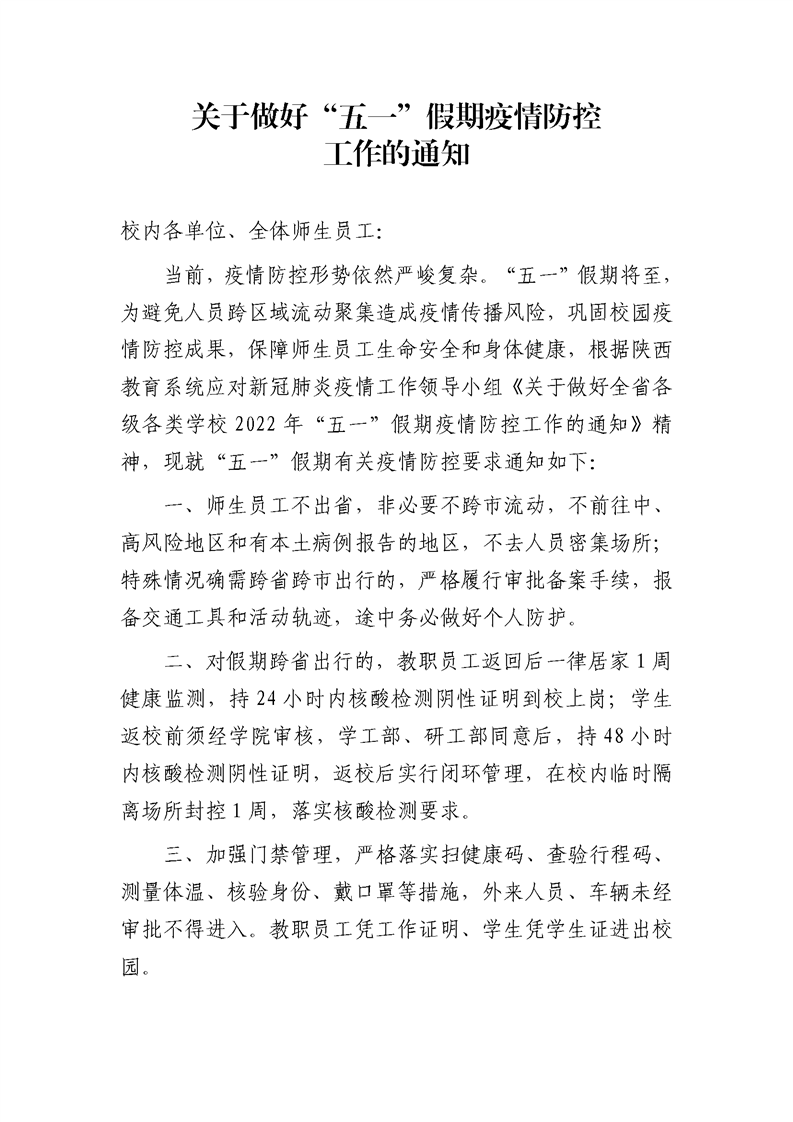 上一篇:长安校区疫情防控指挥部关于做好“五一”疫情防控工作的补充通知