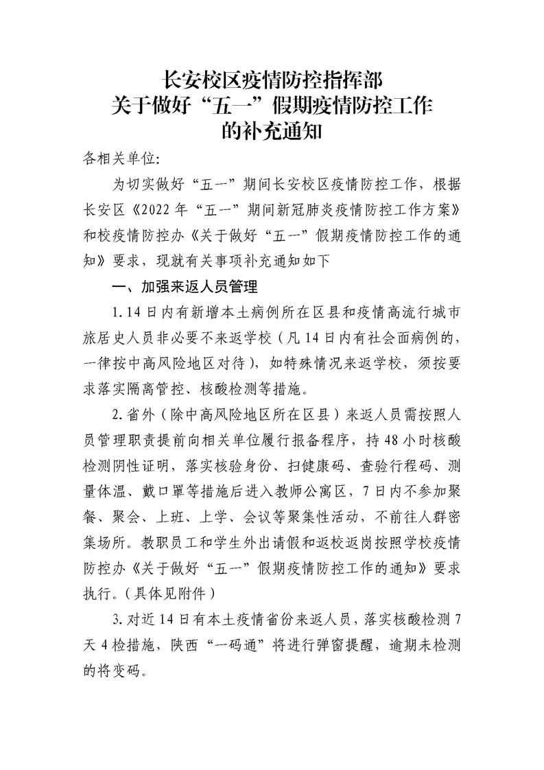 下一篇:关于做好“五一”假期疫情防控工作的通知