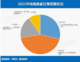 网经社的相关报告显示,被调查企业中,人员比较稳定能满足企业运营要求的占28.71%;处于招聘常态化,每个月都有招聘需求的占43.56%;处于业务规模扩大,人才需求强烈,招聘工作压力大的占17.82%。