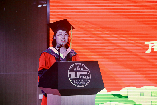 毕业生代表王佳仪发言。祝愿大家,要有敢想、敢闯、敢干的精神,努力做时代的“追梦人”。