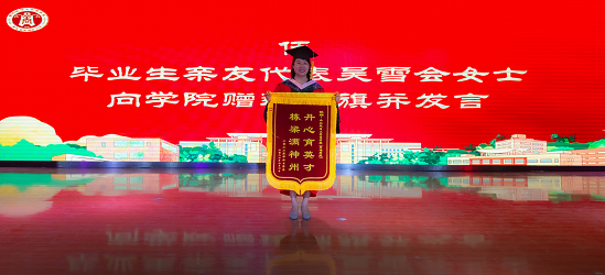 毕业生亲友代表吴雪会女士代表2022届全体毕业生家长向性爱直播 赠送锦旗并发言。感谢各位老师们的辛勤付出和无私奉献,回顾四年来,同学们的难忘时光和成长轨迹,愿大家奔向更高、更远、更大的人生舞台,拥有美好的未来,成就卓越的自己。