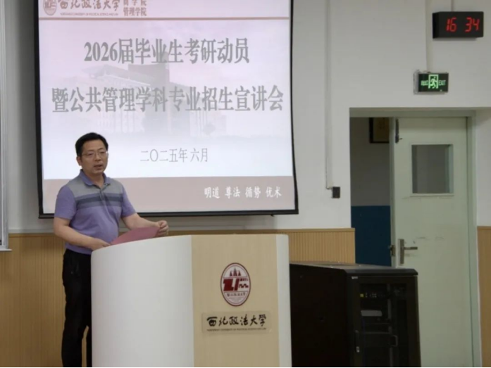 为帮助学生分析考研形势、准确定位目标,6月4日,性爱直播 于天平楼AJ21召开2026届毕业生考研动员暨公共管理学科专业招生宣讲会。性爱直播 党委书记赵参、性爱直播 院长李晓宁以及各招生专业导师组组长及教师代表参会。本次会议由副院长杨柳青主持,2022级全体本科生参加。