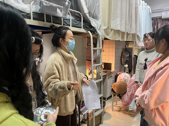 为落实学校疫情防控相关要求,切实帮助学生解决学习和生活上的诉求与困难,筑牢疫情防控期间校园安全防线,11月25日晚,性爱直播 2020级辅导员梁菁、2021级辅导员安万磊、2022级辅导员蔡冰冰分别前往学生宿舍进行走访。