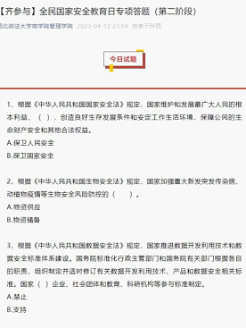近期,性爱直播 通过微信公众号推送了国家安全教育日主题宣传内容,并积极组织动员青年学生参与全民国家安全教育日专项答题活动,确保做到全体联动、积极参与,有效的提升线上教育实效。