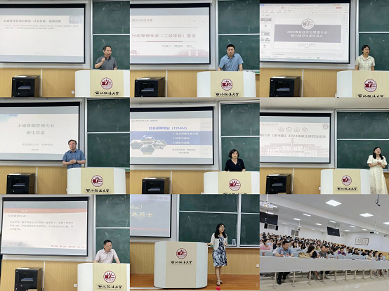 接着,各专业导师组组长和导师代表进行了宣讲。他们分别针对数字治理、行政管理专业、公共管理、社会保障专业、土地资源管理、应急管理、审计学、审计专硕等专业的特点和研究方向,向同学们介绍了课程设置、师资力量以及就业前景等方面情况。他们运用丰富的案例和深入浅出的语言,使学生们更好地了解专业的特点和发展前景,并为学生们的考研选择提供了参考。