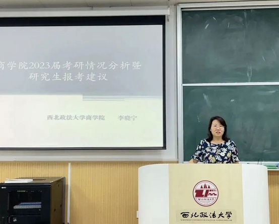随后,李晓宁院长详细介绍了2023届考研情况,分析了各专业在本校的报考率和录取率。通过数据分析和对当前考研形势的剖析,提醒备考的同学们要准确分析形势、科学评估自身能力、精准报考院校,同时针对2024年的报考方向给予了建议。