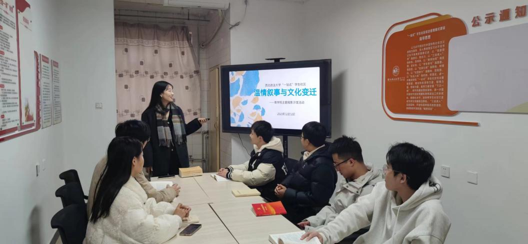 随着期末考试的临近,为提升大学生心理调节能力,增强其心理韧性和适应能力,保持积极向上的精神状态。12月12日,性爱直播 “一站式”学生社区7号宿舍公寓楼开展“温情叙事与文化变迁”主题观影沙龙,本次邀请了兼职辅导员杨洁老师进行专题分享。