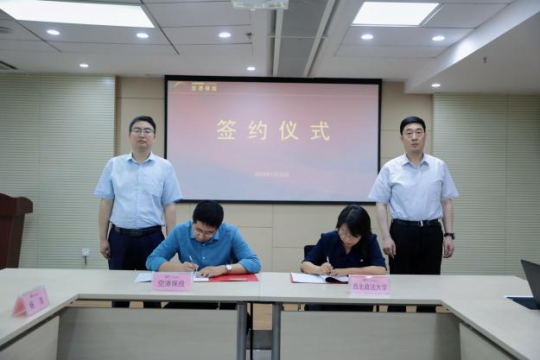李晓宁院长与空港保投公司副总经理张磊共同签署了实习实践合作协议。