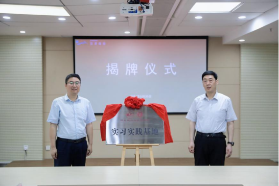 孙昊亮副校长与空港保投公司党支部书记、总经理张磊共同为“实习实践基地”揭牌。