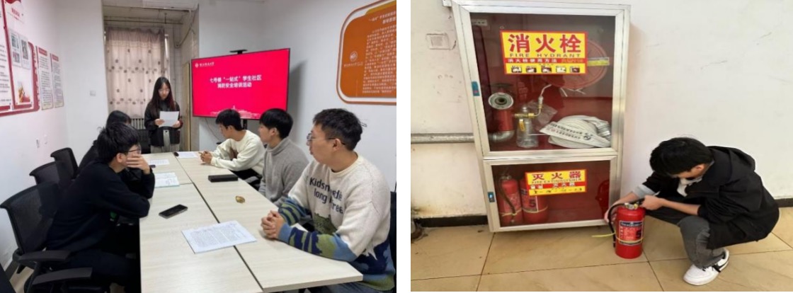 在“一站式”学生社区召开消防安全培训活动会议。会议由7号楼站务委员会心理健康小组成员樊佳凝主持,研究生代表参加。