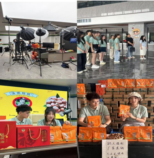实践中,团队更注重将理论转化为行动——在西北核桃物流园开展直播实践,通过新媒体推广洛南核桃,为农产品拓宽销售渠道。