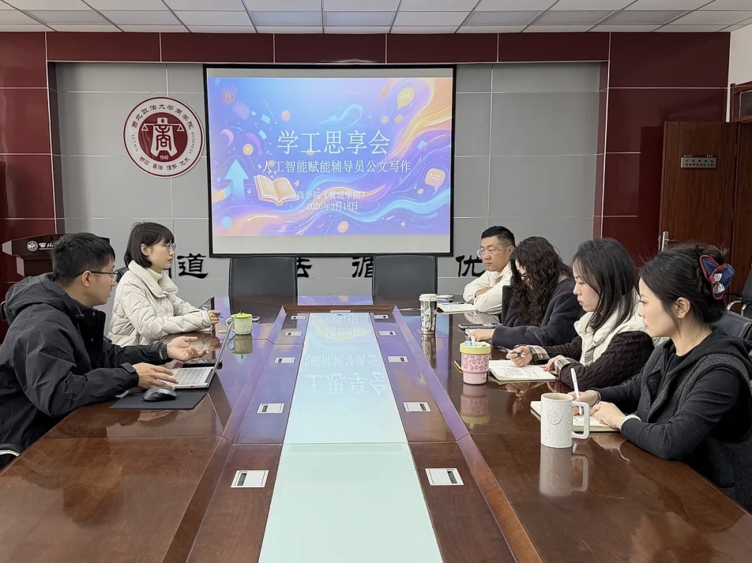 第一期“学工思享会”在学院会议室举行。作为辅导员队伍建设的一次创新尝试,本期活动聚焦“人工智能与辅导员公文写作”,学院党委副书记巩飞、辅导员梁菁、张琪、蔡冰冰、安万磊、熊珂参加活动,全体辅导员围坐一堂,展开深度交流。