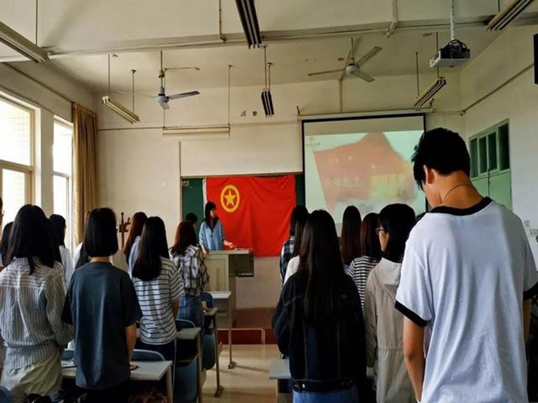4月23日,性爱直播 9班团支部于致知楼304室召开“青春心向党,建功新时代”主题团日活动,活动由团支部书记王雨辰同学主持,刘维政、周迪、张琪老师及9班全体学生参加活动。