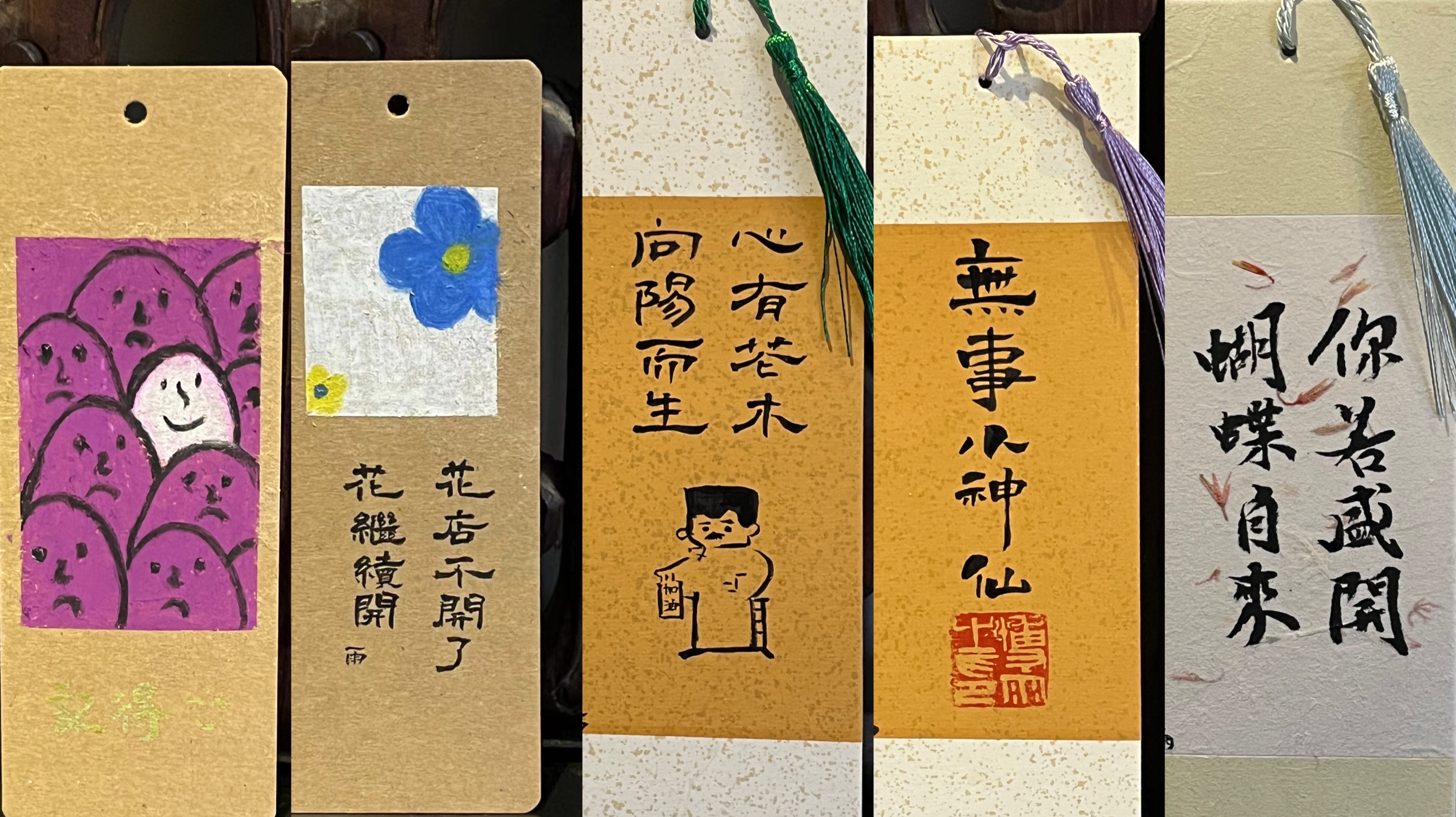 在书签制作活动中,同学们也充分发挥自己的想象力,设计图案,巧妙构思。有的憨态可掬、有的简洁大方,每个作品都凝结了同学们的思考与创意。