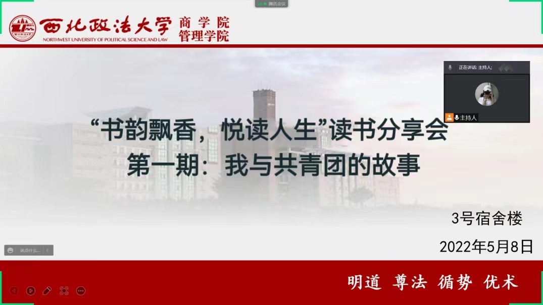 会议伊始,覃思颖带领大家重温入团宣誓,回顾5月4日学校组织的“五四”表彰大会。接着,就本期主题“我与共青团的故事”分享会,5名主讲人分别讲述自己与共青团的故事,参与活动的同学们也互相交流,谈心得体会,收获颇丰。最后,由主持人对本次会议的参与情况进行简短的总结。
