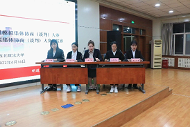 李晓宁院长作总结讲话。她指出,模拟集体协商(谈判)大赛对于构建企业的和谐劳动关系、企业的平稳发展以及维持企业员工的权益具有重大意义,通过大赛进一步树立中国特色社会主义集体协商理念,发挥集体协商制度在协调劳动关系方面的重要作用,推动和谐社会的构建与发展。