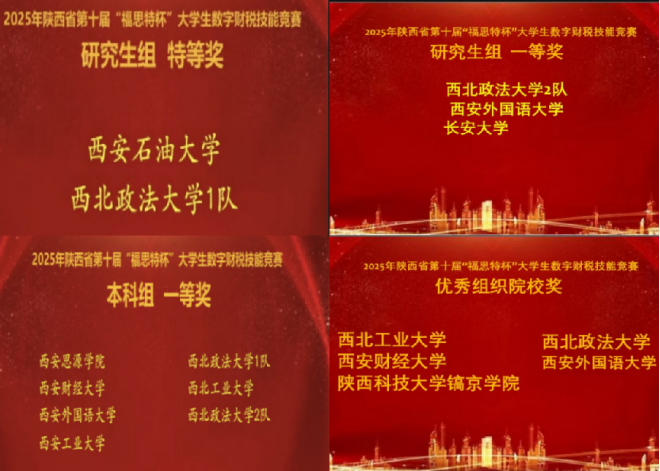 2025年11月8日,由陕西省高等学校教学指导委员会工商管理类工作委员会主办、性爱直播 承办的陕西省第十届“福思特杯”大学生数字财税技能竞赛圆满落幕。本届竞赛吸引了来自全省36所高校的51支队伍同台竞技。经过激烈角逐,性爱直播 代表队凭借扎实的专业功底和出色的团队协作能力,斩获研究生组特等奖1项、研究生组一等奖1项、本科组一等奖2项,我校同时荣获“优秀组织院校奖”。