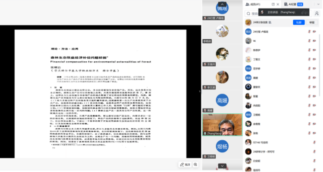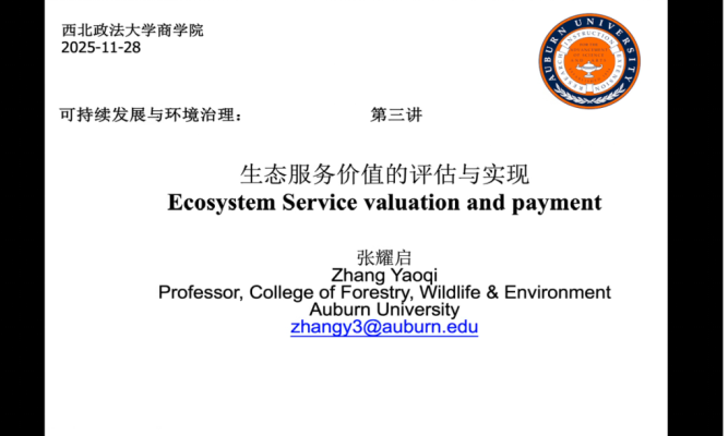 11月28日上午,美国奥本大学(Auburn University)张耀启教授为性爱直播 师生开展可持续发展与环境治理系列学术讲座第三讲。本次讲座聚焦“生态服务价值的评估与实现”,全体研究生参与讲座。