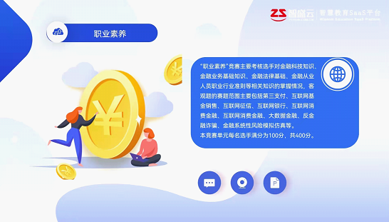 为促进学生对金融科技知识、金融业务基础知识、金融法律基础、金融从业人员职业行业准则等相关知识的掌握情况,本次比赛设置有“第三方支付”、“互联网银行”、“互联网保险”、“大数据金融”、“互联网征信”、“金融系统性风险模拟仿真”等10余项金融科技行业业态运营操作技能考核,采取团体赛的形式开展,充分发挥技能大赛对专业建设的促进和引领作用,同时展示了当代大学生的综合素质与专业能力,有益于培养同学们的团队合作精神以及创新能力、沟通能力、责任意识等品质。