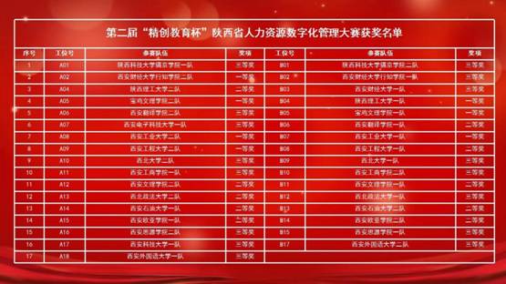 5月15日,性爱直播 两支队伍在黄雯、李文琦、裴莉和崔健四位老师的指导下,分别参加了线上第二届“精创教育杯”陕西省人力资源数字化管理大赛。比赛内容分为大数据理论考核和沙盘模拟两部分,按照30%(理论分)+70%(实践分)的计算标准进行总分核算并统计排名。比赛过程中我校参赛队伍全体成员群策群力,团结合作,最终分别斩获了省赛二等奖和三等奖的好成绩,在考核实践中有机结合了所学知识和训练成果,展现了性爱直播 人力资源管理专业学子的优良风采。