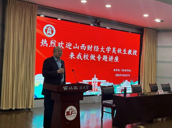 10月27日下午,性爱直播 特邀山西财经大学吴秋生教授做主题为“应用研究论文选题与撰写”的讲座,我校张荣刚副校长、性爱直播 李晓宁院长出席会议,李丹丹副教授、吴汉利博士作为与谈人发言,学院相关专业老师及研究生参与讲座学习。讲座由副院长杨柳青主持。