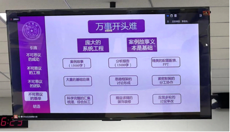 会议共分四个阶段:第一阶段邀请第八届中国公共管理案例大赛最佳案例、一等奖获得团队学生负责人——清华大学2023级MPA研究生李佳乐于线上进行经验分享,他分别从组队、选题、调研、撰写及修改等方面介绍了心得历程和经验教训,研究生们深受触动和启发。