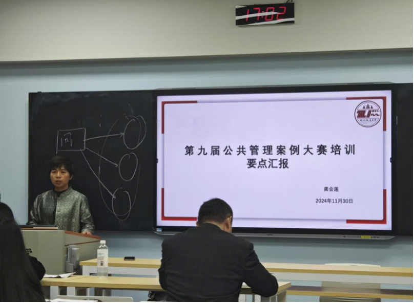 第二阶段由导师组龚会莲老师传达了第九届中国公共管理案例大赛启动会集训精神,她从案例参赛的必要性、案例选题与撰写技巧、案例大赛的赛制和流程等方面进行了介绍和再学习,使师生们对参加案例大赛流程等有一个清晰的认识。