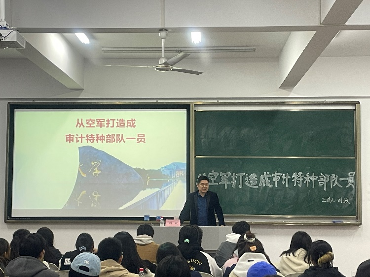 11月29日,我院教师刘政受南京审计大学金审学院的邀请,为该校师生带来了一场题为《从空军打造成审计特种部队一员》的专题报告和审计专业招生宣传。刘政博士不仅是一位资深的教育工作者,也是审计领域的实务专家,他的这次讲座吸引了众多师生的关注。