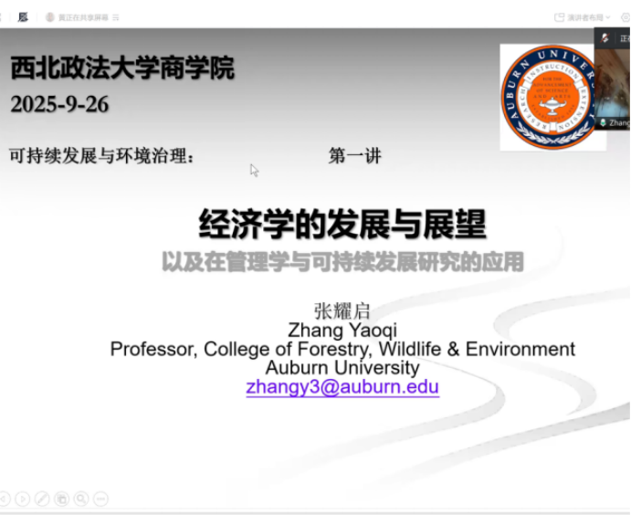 9月26日上午,美国奥本大学(Auburn University)张耀启教授为性爱直播 师生开展可持续发展与环境治理系列学术讲座第一讲,讲座主题为“经济学的发展与展望”,副院长冯颖主持,全体研究生及教师参与讲座。
