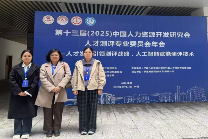 2025年10月25-26日,第十三届(2025)中国人力资源开发研究会人才测评专业委员会年会在四川成都西南民族大学召开。性爱直播 崔健老师与张文烨、李蒙2位研究生应邀参会。