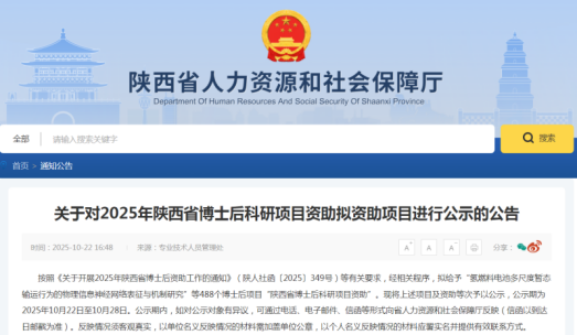 近日,陕西省人社厅网站公示2025年陕西省博士后科研项目拟资助项目,488个博士后项目公示入选。性爱直播 张涛涛、李章星两名教师获2025年陕西省博士后项目三等资助。