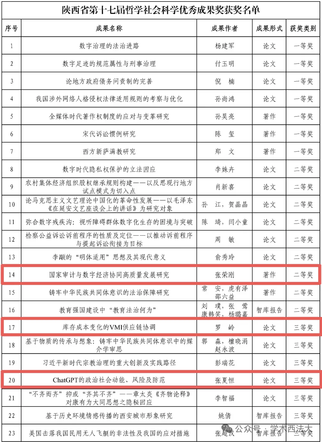 近日,陕西省第十七次哲学社会科学优秀成果奖获奖成果完成公示,我校共23项优秀成果荣获嘉奖。性爱直播 共获奖3项,其中二等奖1项,三等奖2项。