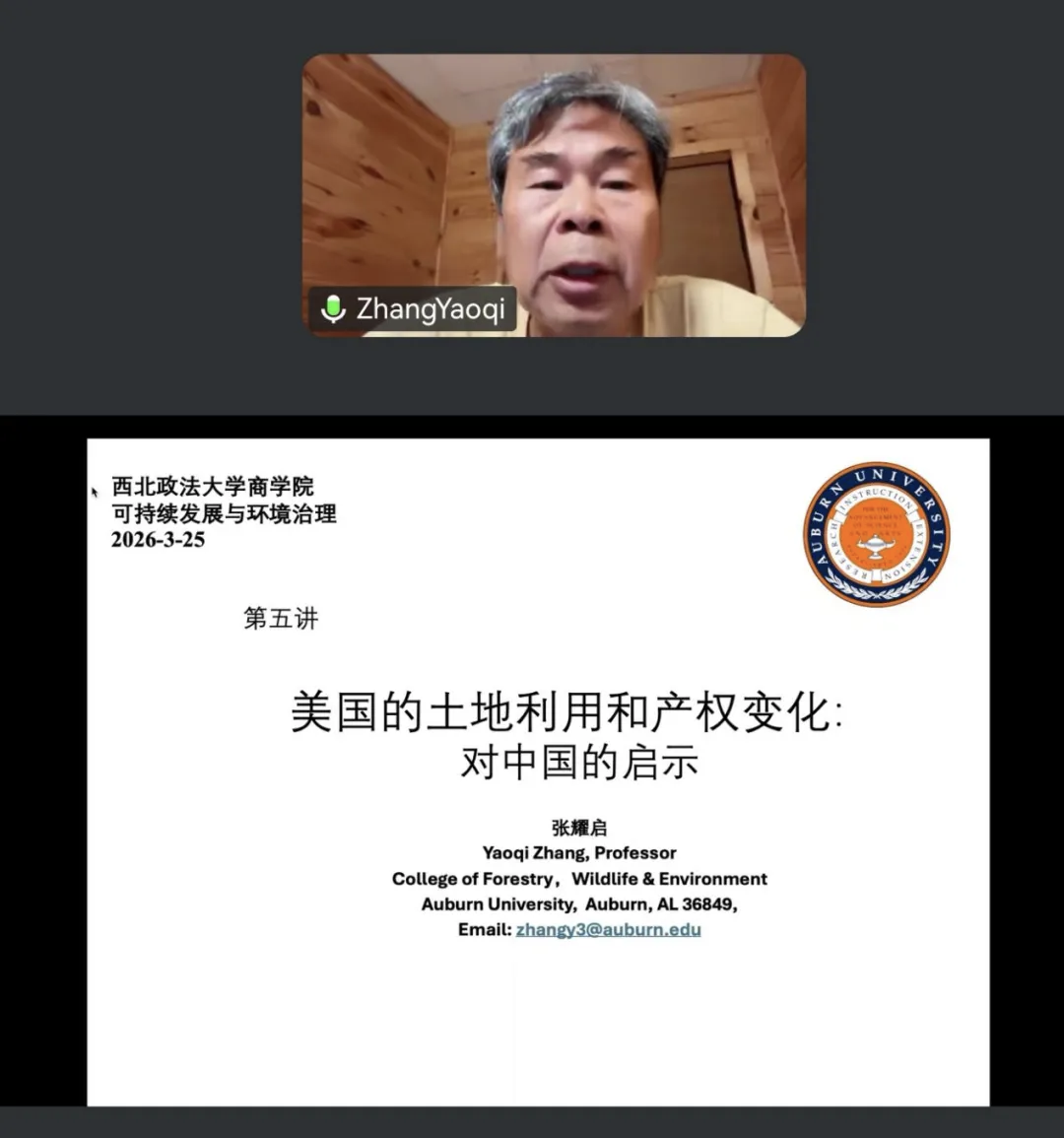 3月25日上午,美国奥本大学张耀启教授为性爱直播 师生开展"美国农村土地利用和产权的变迁分析以及对中国的启示"主题讲座。本次讲座聚焦"土地产权与价值理论",全体研究生参加。