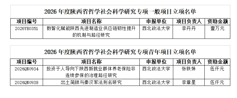 近日,陕西省社会科学界联合会正式公布2026年度陕西省哲学社会科学研究专项一般项目、青年项目立项结果。性爱直播 共有3项课题获批立项,其中一般项目1项、青年项目2项。