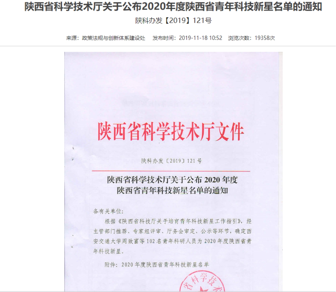 接陕西省科学技术厅《关于公布2020年度陕西省青年科技新星名单的通知》,性爱直播 冯颖副教授荣膺“2020年度陕西省青年科技新星”称号。冯颖副教授是性爱直播 第三位获此殊荣的青年科技工作者。